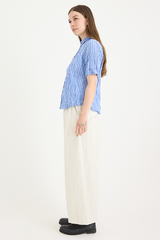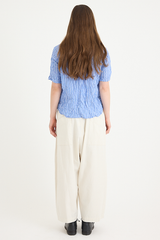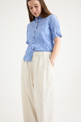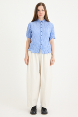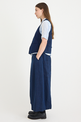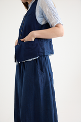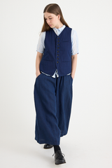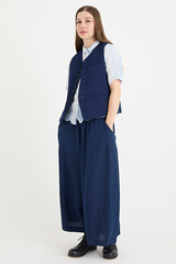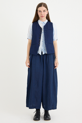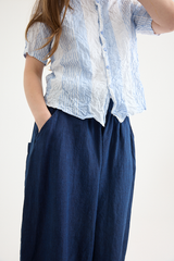The Yarn Dye Oxford Relax Pants from Pas de Calais are crafted from a yarn dyed cotton fabric. This piece has a workwear inspired presence to it, woven from a high density cotton that balances a ruggedness with an elegant silhouette. The pants feature an elasticated waistband, side pockets, and a wide, cropped fit. These trousers are a pair that will gain more depth and character as they’re worn, aging beautifully with the wearer.