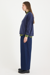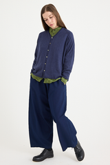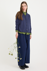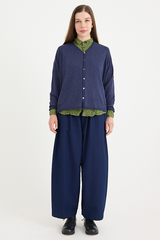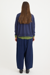 The Linen Indigo Chambray Pants from Pas de Calais are crafted from a yarn dyed linen chambray fabric. This piece has a workwear inspired presence to it, with a delicate, French linen fabric that balances the style. The pants feature an elasticated waistband, side pockets, and a wide, flowy fit. These trousers are a pair that will gain more depth and character as they’re worn, aging beautifully with the wearer.