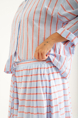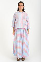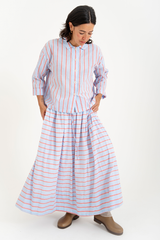 The Cactus Skirt by Bukeshla is crafted from a soft Japanese striped cotton. Set on an elasticised waistband at the back that allows for versatility, and a fixed waistband with drawstring at the front. The skirt features wide internal hem facing, deep side pockets & french seams throughout. An incredibly comfortable, easy to wear gathered skirt that you can reach for no matter the occasion.