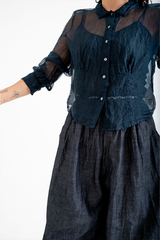 The Florence blouse by Bukeshla is crafted from a silk organza. It features subtle pleating and darts at the waist, and sleeve hem, with a classic shirt collar and button front. The delicate, yet durable silk organza and intricate details elevate this simple shirt into a piece that’ll quickly become a wardrobe favourite. Please note that the embroidered feature is a unique hand-drawn element that will vary slightly with artistic interpretation and should be appreciated as its point of difference.