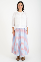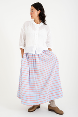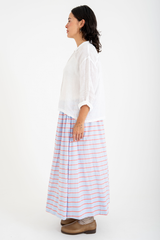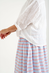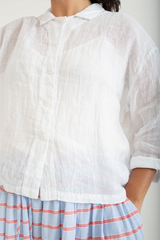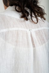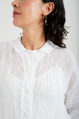 The Market shirt by Bukeshla is crafted from a soft, loose weave linen. It features a drop-sleeve, boxy fit and wide-open collar that lends a utilitarian sensibility to the piece. Gently luxurious details such as external facings, and hand-stitched top-stitching subtly elevate the classic shirt. The Market shirt is perfect for all occasions, with a fit that can be easily paired with anything.
