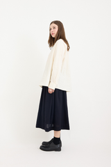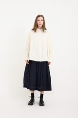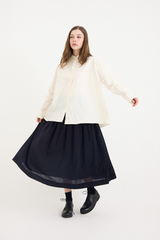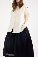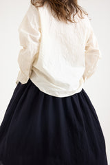 The Up Up Skirt from Casey Casey is crafted from Linvel fabric with a washed finish. It features an elastic waist with a drawstring, ruffle detailing along the waistline and below the seam, and a discreet pocket in the front seam. Fully lined for added comfort and structure.