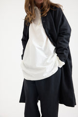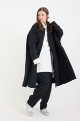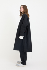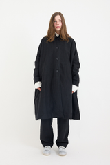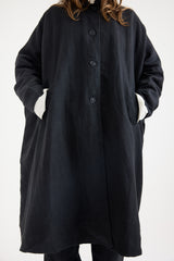 The Atomless Coat in Batavia fabric is a mid-length, oversized coat with a relaxed silhouette and a distinctive washed-out effect. Crafted from Batavia - a durable, textured fabric with a unique diagonal weave—it combines style and functionality. The coat features dropped shoulder seams, front pockets, corozo buttons, and a comfortable cotton lining. A timeless piece from Casey Casey.