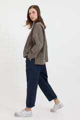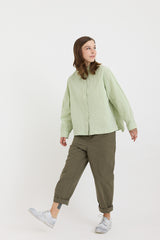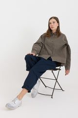 Bella is 170cm tall, wears an AU 8 and is wearing Size M here, paired with the Fabi Italian Pants (Argil), the Tippy Pants (Jade) and Marsell Zucca Media Derby in White-Grey.
