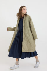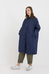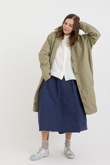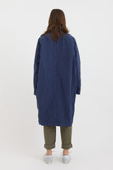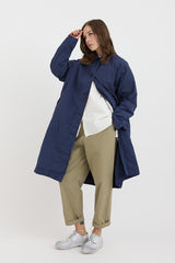 A mid-weight cotton coat with raglan sleeves, slash pockets and corozo buttons. Yarn dyed for deep colour, a compact fabric whose beauty increases with every wash.
