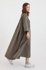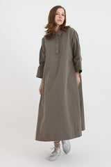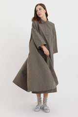 A swing style shirt dress by Casey Casey with pleating detail at the sides and along the back yoke. Features a point collar and partial button-up front. There are hidden pockets within each side pleat.