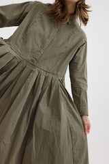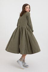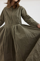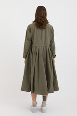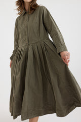 A classic Casey Casey silhouette, the Ella Dress is fashioned from heavyweight washed cotton and features a button-up half placket and box pleating at the waist. Sleeves are full length and cuffed, plus there are hidden in-seam side pockets and corozo buttons. Finished with an inverted box pleat down the centre at the back.