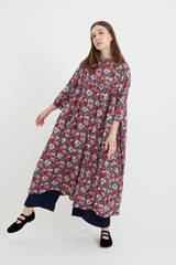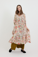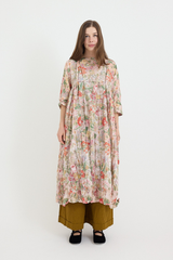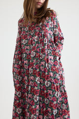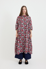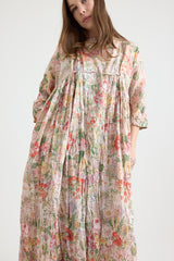 This Daniela Gregis dress features a square neckline, half sleeves, a long length, and two sleek side pockets. Crafted from 100% cotton, it is lightweight and soft to the touch. A standout detail is the adjustable front, designed with ruched sides that can be cinched using the string detailing. It is available in four different floral patterns.