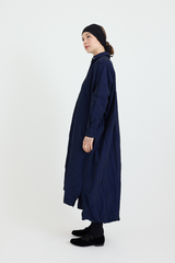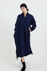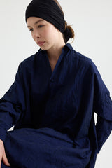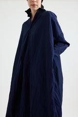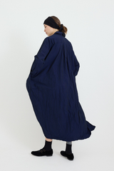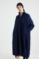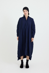 This shirt dress by Daniela Gregis is crafted from midweight textured cotton and features a front slit with two fabric-covered buttons, long sleeves with cuffs, side seam pockets, and an extended length with a shorter front hem. Designed with side slits, this one-size style is made to fit all. A timeless piece that blends elegance with a relaxed fit.
