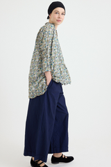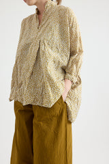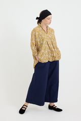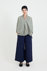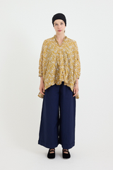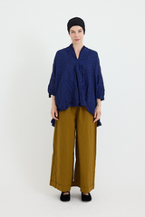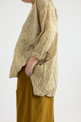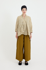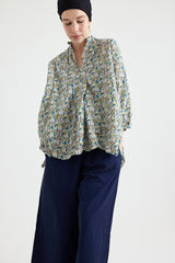 The Kora Shirt by Daniela Gregis is designed with a small collar on a V-neckline, ¾-length sleeves, and hem slits, with the back longer than the front. Pleated detailing at the front lends a subtle nod to kimono-inspired style. Made from smooth, lightweight cotton, this versatile piece is ideal for everyday wear and can be dressed up or down for any occasion.