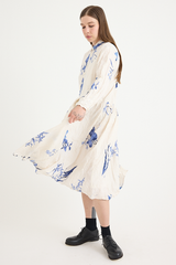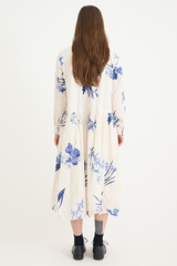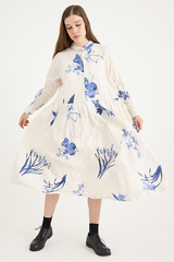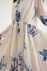 The Japonism Flower Print Dress from Pas de Calais is crafted from a lightweight crinkled cotton. The soft cotton fabric has been printed with a Japanese floral design that evokes a sense of calm. The dress features a classic collar, button front, gathering at the waist and delicately hand finished treatment to the fabric that creates the pleat-like wrinkles. A soft, airy take on a classic silhouette.