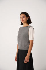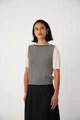 The Striped Star Vest by Francie is crafted from 100% Extra-fine Merino Wool. Breathable merino means the Star vest is cool enough to be worn as a boat neck top in summer, yet warm enough to be layered in winter. Low armholes allow for layering with long-sleeve shirts and dresses, while a gentle rib creates shape at the hem.A slightly cropped style designed to finish at the waist, size up for hip length.