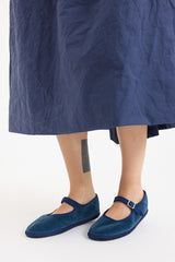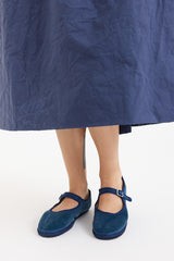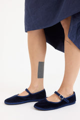 A simple and lightweight slipper-style shoe with a velvet fabric upper and recycled rubber sole. This is a soft shoe and similar in weight to an espadrille, best to be worn in dry weather as they are not waterproof. Handmade in Italy.