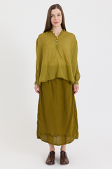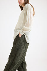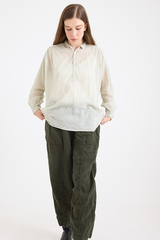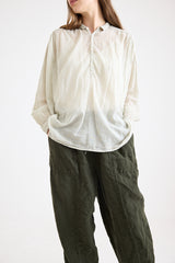 The Hill shirt is made from very soft cotton voile, and features an elegant mandarin collar, soft gathers along the front shoulders and back yoke with delicate pin tucks on the sleeve that billow down to a slightly gathered cuff.