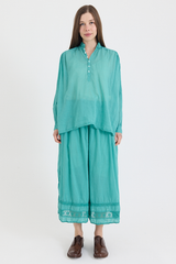 Given the sheer properties of the cotton voile, we recommend layering the Hill Shirt over the Imogen or Camille camisole.
