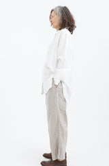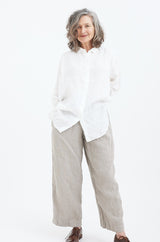 A relaxed, wide-leg pant made from a luxurious European flax linen. The Katherine Pant features an enclosed elasticated waistband for comfort and styling, a straight leg silhouette, and handy side seam pockets.