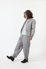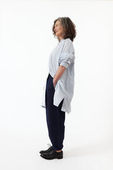 The Peregrina Pants are a tried and true Hannoh staple, this season coming in a beautiful lightweight linen. With an elasticated waist, pockets, false button front, raw seams at the cuff in a straight leg silhouette with details creating a stunning fit at the back.