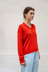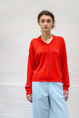 A lightweight, knitted cotton pullover featuring a scoop neck, dropped shoulders and long sleeves.