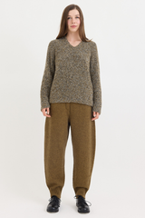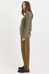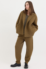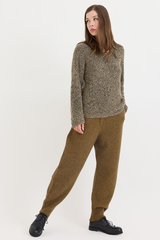 The Climbing Flax Trousers from Boboutic are crafted from a luxurious blend of flax, wool, and yak. They feature slim, slightly tapered legs, ribbed hems, one back pocket, side pockets, with an internal elastic finish at the waist for ease and comfort. With their rich texture, they add warmth, elegance, and effortless style to any outfit, making them an essential piece for cooler days.