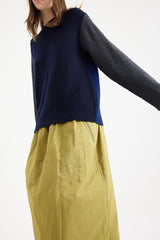 The Matcha Sweater by Sofie D'Hoore is crafted from a soft wool-cashmere blend, offering both warmth and comfort. Featuring a colour-block design, it has a classic crew neck, long sleeves, and a straight hem, making it a versatile and timeless addition to any wardrobe.