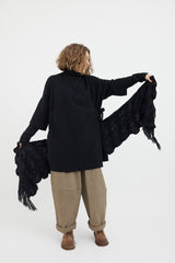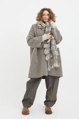 Casey is 165cm tall, wears an AU Size 8 and is wearing One Size here, paired with the Wind Pants, Soft Crew Neck and Double Face Wide Coat (Granite); the Vessel Pants and Wrap Wide Cardigan (Black Melange), along with Marsell's Guardella Derby Shoes in Brown Suede.