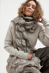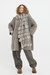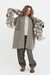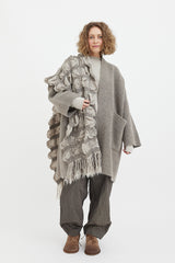 The Handwoven Carton Wrap features a cinched and ruched grid pattern with a raw fringe detail at both ends. Soft and warm, wear it loose to add texture to your outfit or wrap around yourself for the ultimate cosy feel.