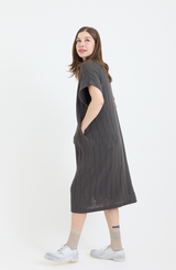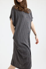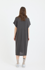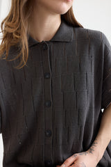 The Lattice Shirt Dress by Lauren Manoogian is an oversized straight dress crafted from a blend of Pima cotton and linen. It features corozo buttons at the front, a ribbed polo collar, lightweight knit, side seam pockets, and a cropped length.