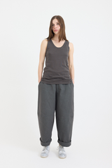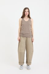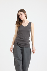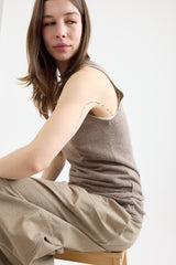 This tank is crafted from a fine knit cotton-linen blend and features a U-neck with ribbed detailing along the neckline, hem, and armholes. A classic piece that's effortlessly versatile.