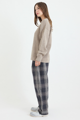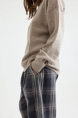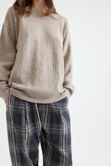 This quilted double-layer knit is crafted from a luxurious blend of merino, alpaca, and pima cotton. Featuring a softly textured woollen exterior and a smooth cotton interior, it is finished with binding details, ribbed cuffs, and hem. Designed with a relaxed fit to effortlessly elevate the everyday wardrobe.