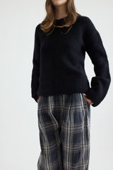 This Lauren Manoogian crewneck knit is crafted from the highest grade alpaca blend, offering an exceptionally soft and airy feel. Designed with seamless construction and a subtle stretch, it drapes effortlessly on the body, ensuring maximum comfort. Finished with a ribbed neckline and relaxed dropped shoulders, this timeless piece is masterfully made to elevate the everyday wardrobe.