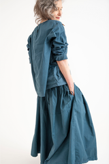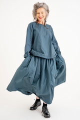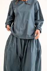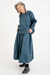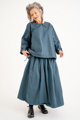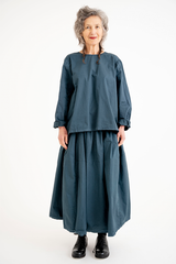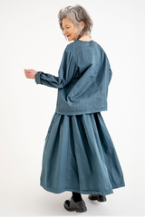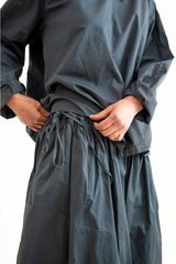 The Sata Skirt by Manuelle Guibal is crafted from lightweight cotton with a subtle crinkled texture. It features an elasticated waistband, two side patch pockets, and gentle gathering through the waist. Versatile and functional, this piece is thoughtfully designed for effortless wear across the seasons.