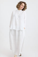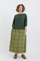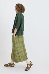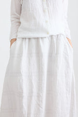 The Fifi Check A-Line Skirt is a mid-length piece designed for effortless wear. Made from lightweight linen, with a tonal check pattern and a comfortable elastic waistband, it combines ease and style seamlessly. Its easygoing fit and breathable fabric ensure comfort, while its chic design keeps it modern and stylish.