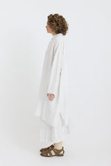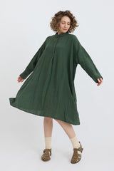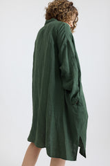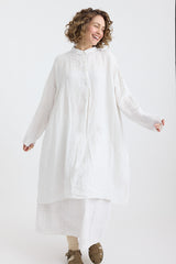 This long-sleeve tunic features a partial button-front design made from 100% linen. With an oversized design and a loose fit, this style offers ultimate ease. The tunic includes sleek pockets on either side and a small slit along the length, making it a versatile and comfortable choice for everyday wear.