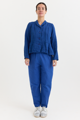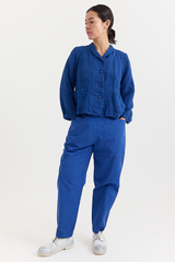 The Lijili Small Jacket by Manuelle Guibal is crafted from midweight linen and features a round collar, two front patch pockets, a back vent, long sleeves, and a front button fastening. Designed with a softly fitted silhouette, this jacket beautifully blends everyday ease with understated elegance.