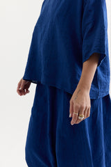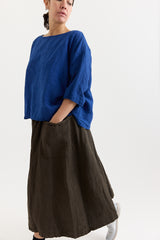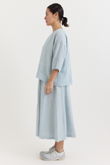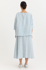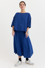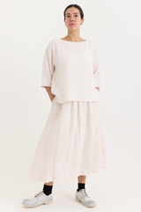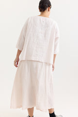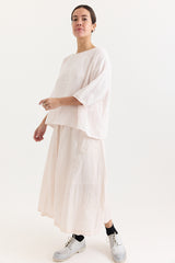 The Yilin Top by Manuelle Guibal is crafted from midweight linen with a softly crinkled texture. It features a round neckline, dropped shoulders, and a boxy, relaxed silhouette.