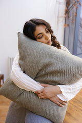 Featuring a nostalgic delicate diamond motif that adds an understated accent to your home, with the pattern carrying across both sides. Crafted from Lithuanian grown, woven and sewn linen, especially for Metta Melbourne. Covers are sold separately to allow you to mix and match textures and colours. Concealed discreet side zipper.