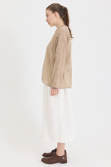 The Ida Shirt is a minimal and classic women’s long sleeve blouse crafted from beautiful soft cotton voile. Featuring an elegant mandarin collar, a subtle A-line silhouette and a full button front with shell buttons.The hand screen print is inspired by a beautiful antique fabric found in a market in Japan. The print was faded in areas and this detail was carried over into the final design to capture the character, and patina of the vintage piece.
