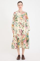 The Nomi Dress is an updated version of Metta's popular Olive Dress. This season in a bold and beautiful 'Bouquet Print' floral design, and hand screen printed onto our crisp cotton poplin. Combining both structure and organic drape, the Nomi Dress has an elegant and slightly scooped neckline with v-notched detail, dropped shoulders, and side panels with gentle gathering. A perfect statement wear alone or layer style, the Nomi Dress features a longer sleeve for coverage and generous side pockets concealed in the seams.