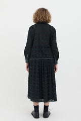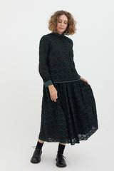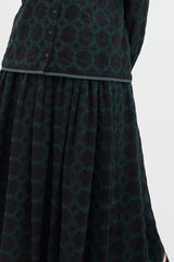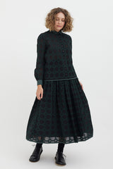 An exquisitely hand embroidered skirt by Mïna Perhonen, fashioned from 100% cotton and featuring a fixed waist with silk trim, side fastening with hook & eye closure and invisible zip. Pleats fall from the waist, creating elegant drape and movement. Fully lined.
