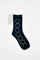 These Tambourine socks are a beautiful stocking style sock, decorated with the famous Minä Perhonen tambourine design running up the side of the sock.