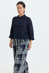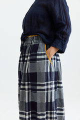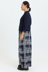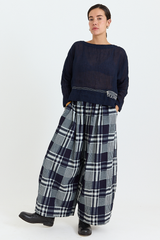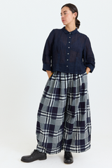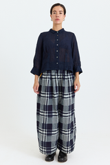 The Rosemary Pant from Bukeshla is crafted from midweight cotton. It features an elastic waistband, side pockets, and wide legs with a single button at the hem to adjust the width. The waistband and pockets are detailed with contrasting color finishes. This relaxed-fit piece exemplifies versatility and comfort.