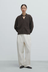 This classic cardigan is crafted from soft baby alpaca wool and designed in a regular fit for everyday comfort. It features a flattering V-neckline and medium-sized button closure down the front. Long sleeves are finished with chunky ribbed cuffs, mirrored at the hem for a touch of structure. A timeless essential in a staple hue, perfect for layering across seasons.