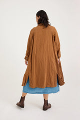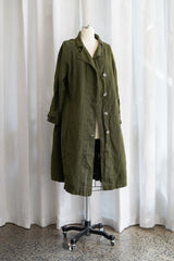 Featuring a full button front, generous side pockets, and raglan sleeves that are great for allowing cosy layering in the cooler months. 1915 Duster Jacket’s sleeves are finished beautifully with buttons and tab. The mid-weight linen makes the 1915 Duster a great staple for Spring and Autumn layering.