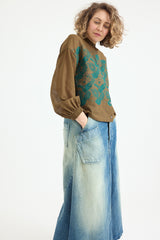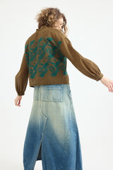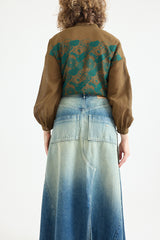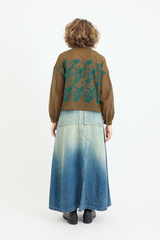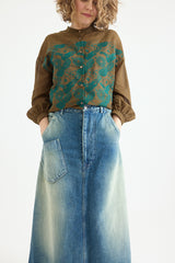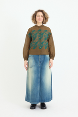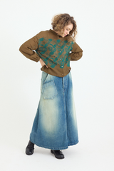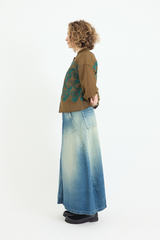 The Minä Perhonen Always Denim Skirt is a timeless piece crafted from mid-weight cotton and linen denim. It features belt loops, back slit, angled side pockets, a front patch pocket and coin pocket, back patch pockets, and a zip fly fastening. The skirt is finished with the brand's signature butterfly motif and contrasting white stitching throughout, making it a versatile addition to elevate your everyday wardrobe.