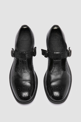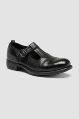 The Calixte 071 T-bar shoes by Officine Creative exude retro-inspired sophistication with a modern twist. Handcrafted in Italy from black leather, they feature refined brogue detailing, an adjustable buckle strap, and a durable rubber tread sole.