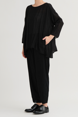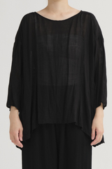 This blouse from Pas de Calais is crafted from a lightweight crinkled blend of cotton, hemp, and ramie. It features a boat neckline,a voluminous cut, and dropped shoulders. A relaxed piece to elevate your everyday wardrobe, gatherers around the back yoke.