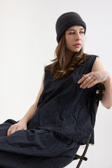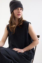 SCHA dark grey beanie with a layered edge, crafted from soft wool.