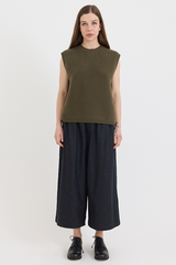 A sleeveless crewneck sweater knitted from structured 100% cashmere. Finished with ribbed trims at the neckline, armholes, and hem, it has a generous fit that makes it ideal for layering through the seasons.
