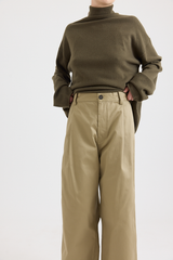 Cut from midweight cotton, the Pasadena Pants balance structure with ease. They sit at a mid-rise waist and fall to wide legs with soft front pleats. Finished with side seam pockets, a back patch pocket, belt loops, and a button closure, they bring understated sophistication to a relaxed silhouette.