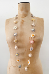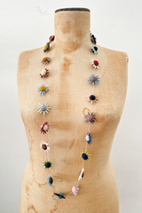 A handmade necklace by Sophie Digard, crafted with intricate crochet and embroidery. This artisanal piece is entirely handmade with great care, making it a unique and timeless addition to any look.
